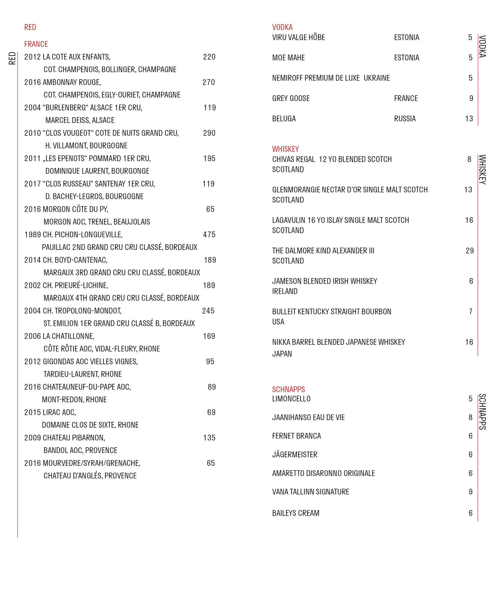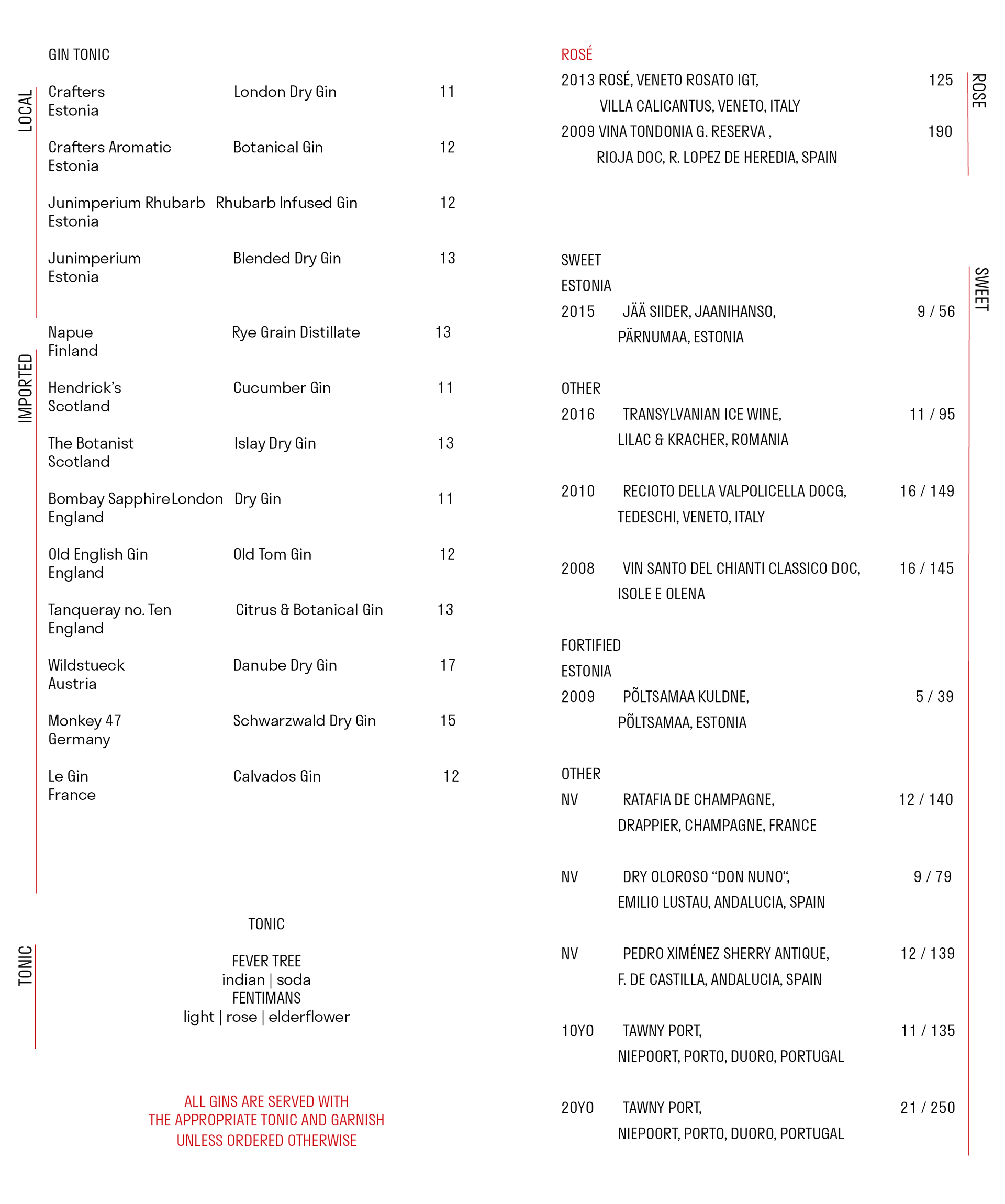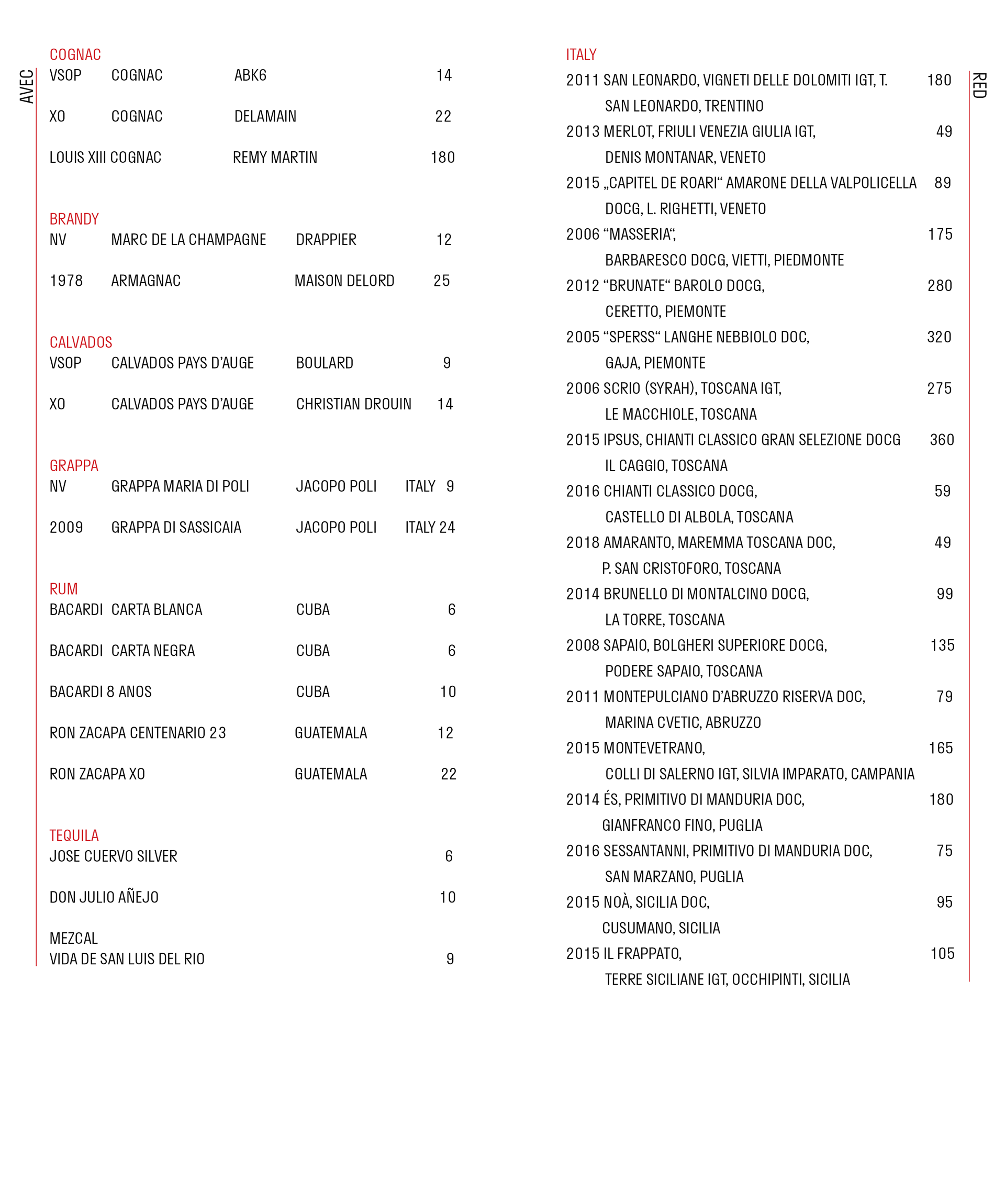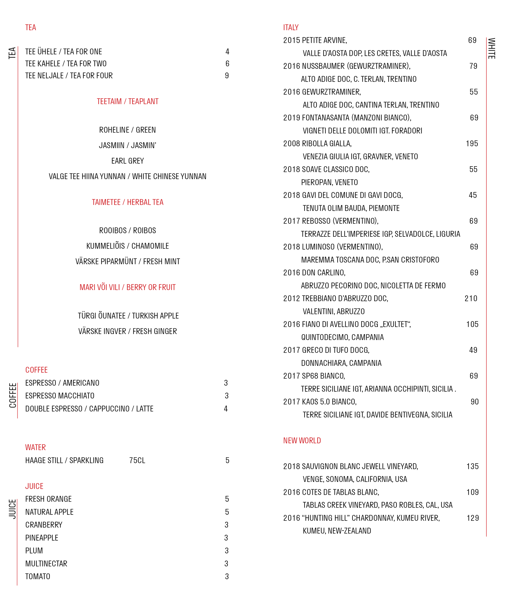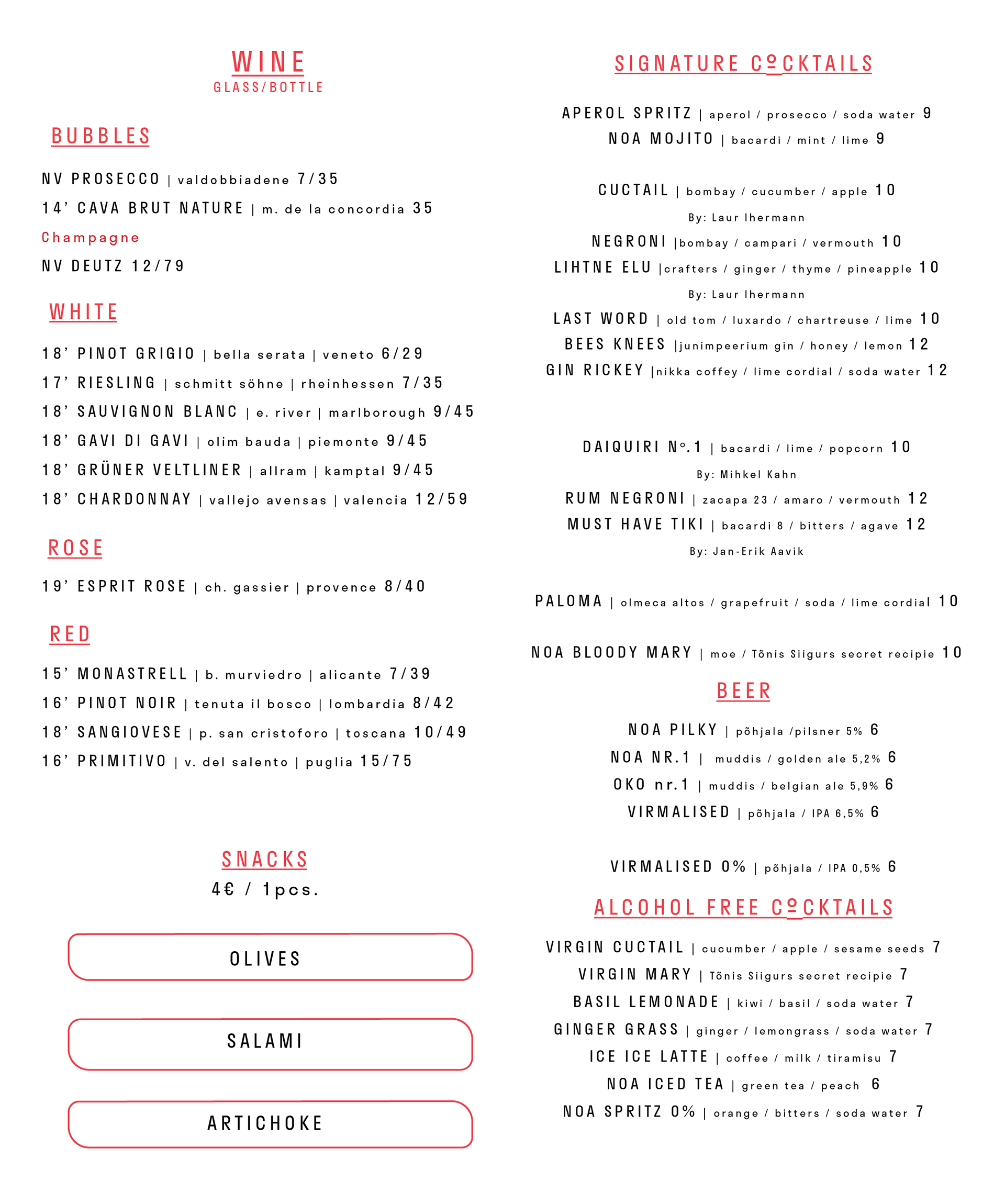 NOA Drinks MENU