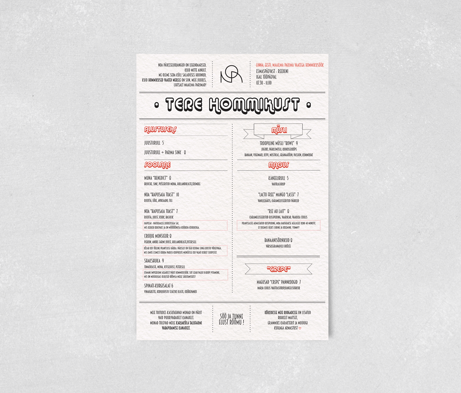NOA lunch menu design