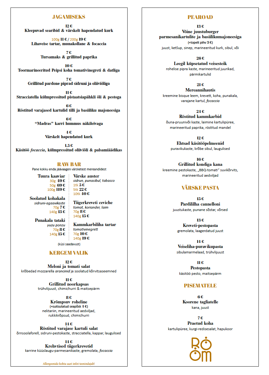 Kolm Tilli tallinn menu / merch